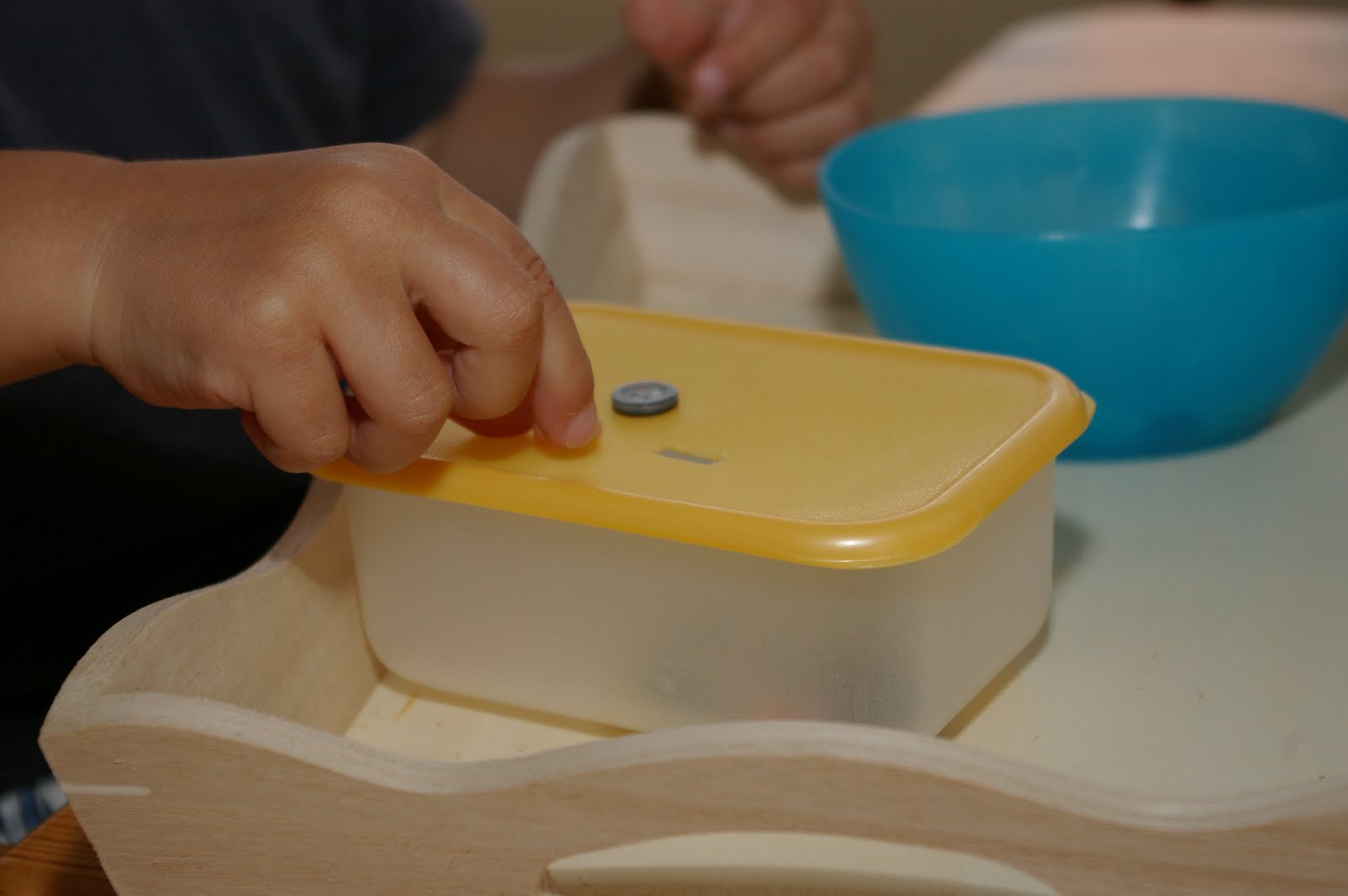 Au début, quand j’ai proposé cette activité à Grégoire, j’avais peur que les boutons soient trop petits. Mais, au final, il la pratique beaucoup… ça donne de la précision à ses gestes…
