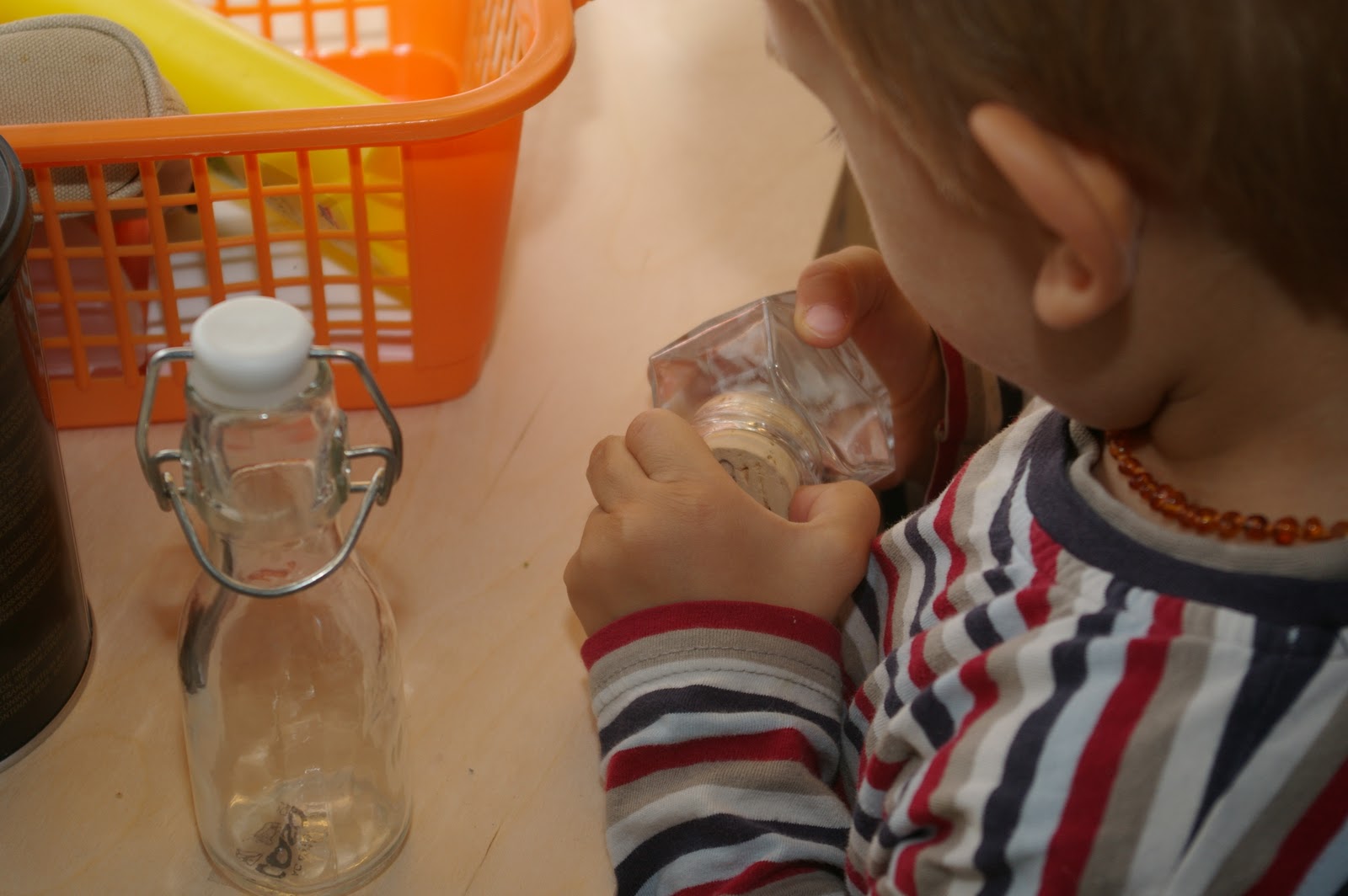 Trier des boutons, trier des objets (le tri des couleurs est toujours en “stand by”) est également une activité que Grégoire fait depuis plusieurs mois mais sur laquelle il revient fréquemment.