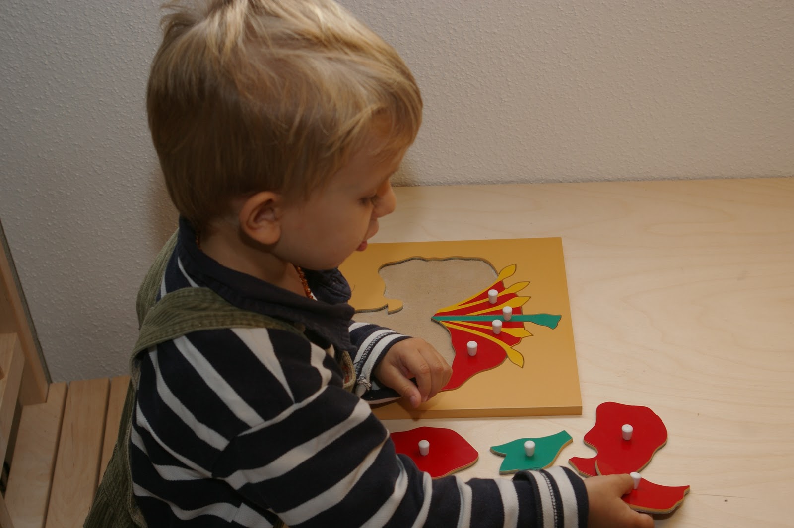 Les puzzles botaniques (aussi une nouveauté!), malgré le fait qu’il est bien jeune pour les faire, l’attirent. Rien que le fait de sortir les pièces, les aligner autour du puzzle pour les remettre en place avec notre aide lui plait et il est passionné. En général, s’il en commence un, il les fait tous les trois… l’arbre, la feuille et la fleur.