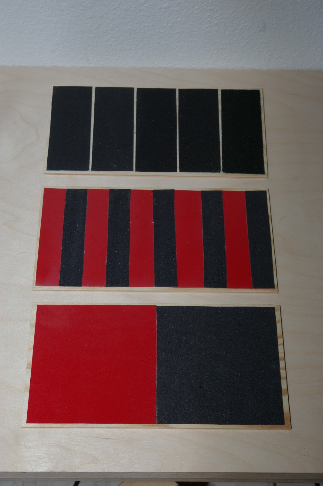 3e planche: 5 bandes de papier rugueux de fin à rugueux (3ans et demi)