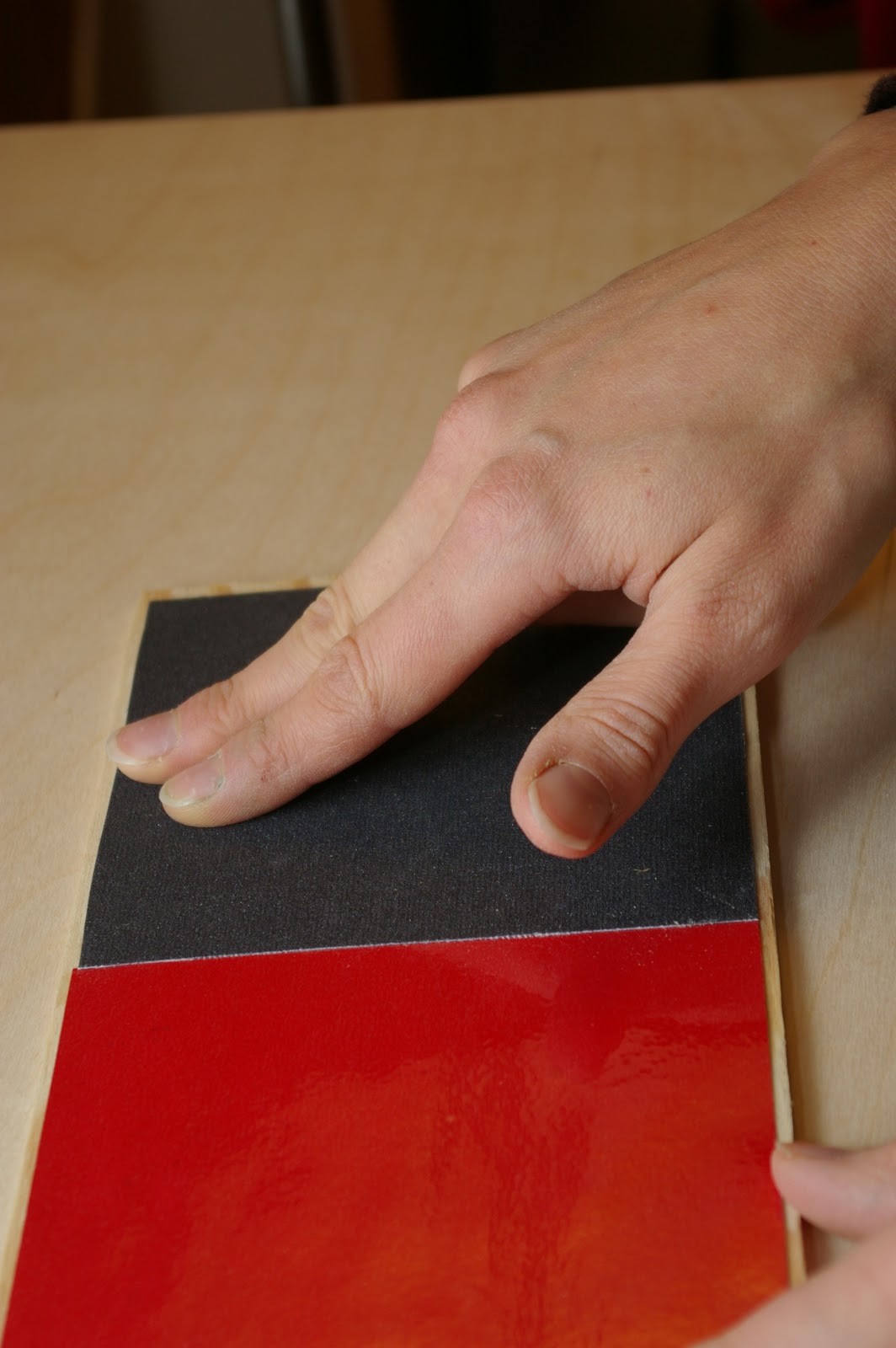 Trois planches en bois recouvert de papier rugueux.