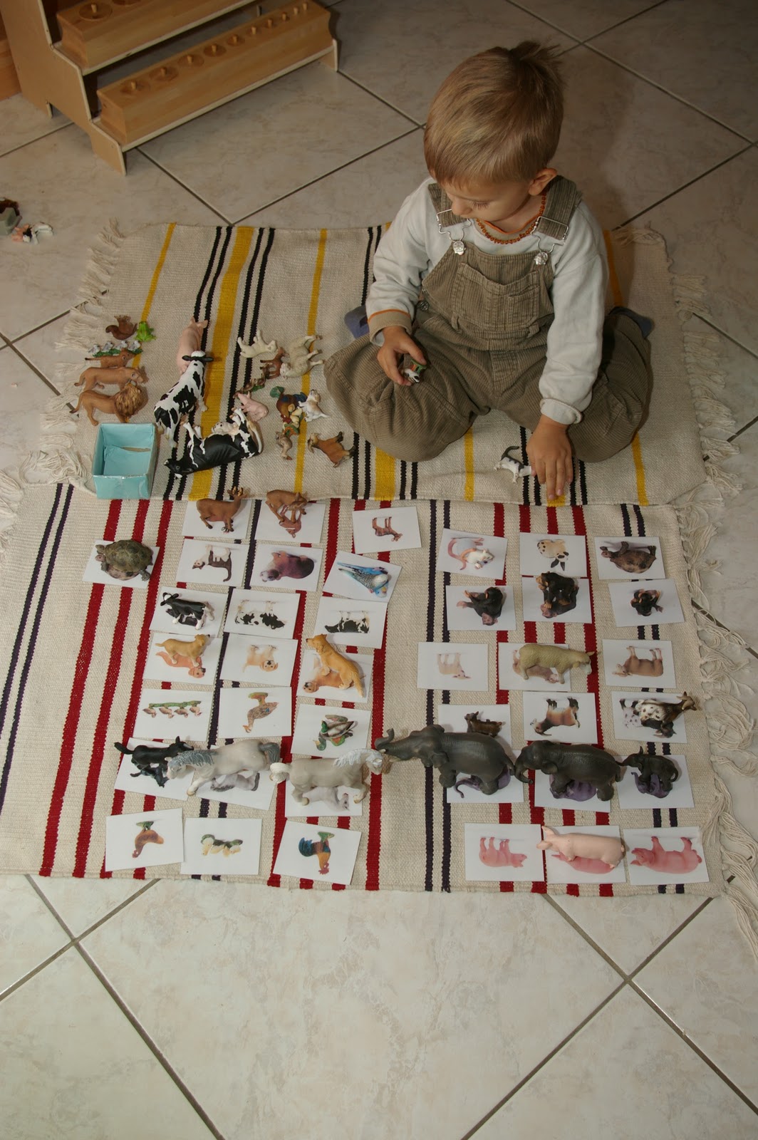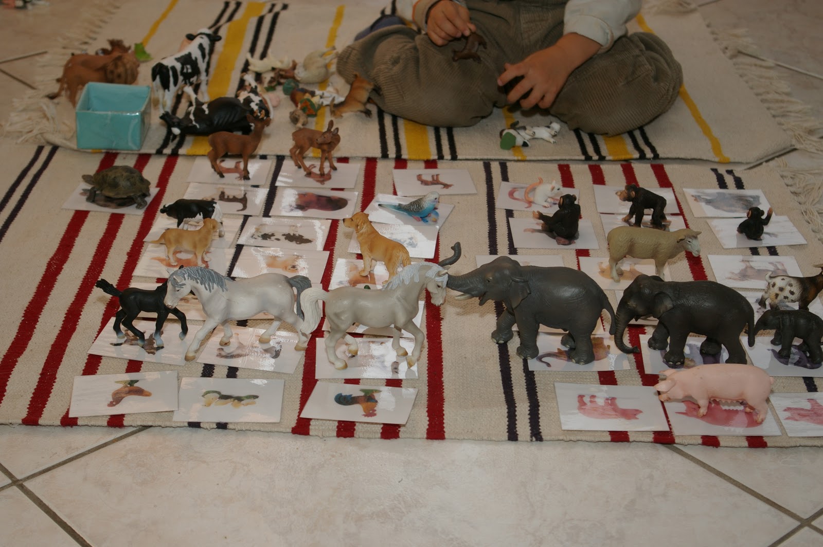 Schleich dont il a les figurines. Ce ne sont pas les “vraies” cartes de nomenclature… il manque la nomenclature justement, mais pour cette activité cela n’est pas grave. On en fera de nouvelles pour les vraies cartes de nomenclature.