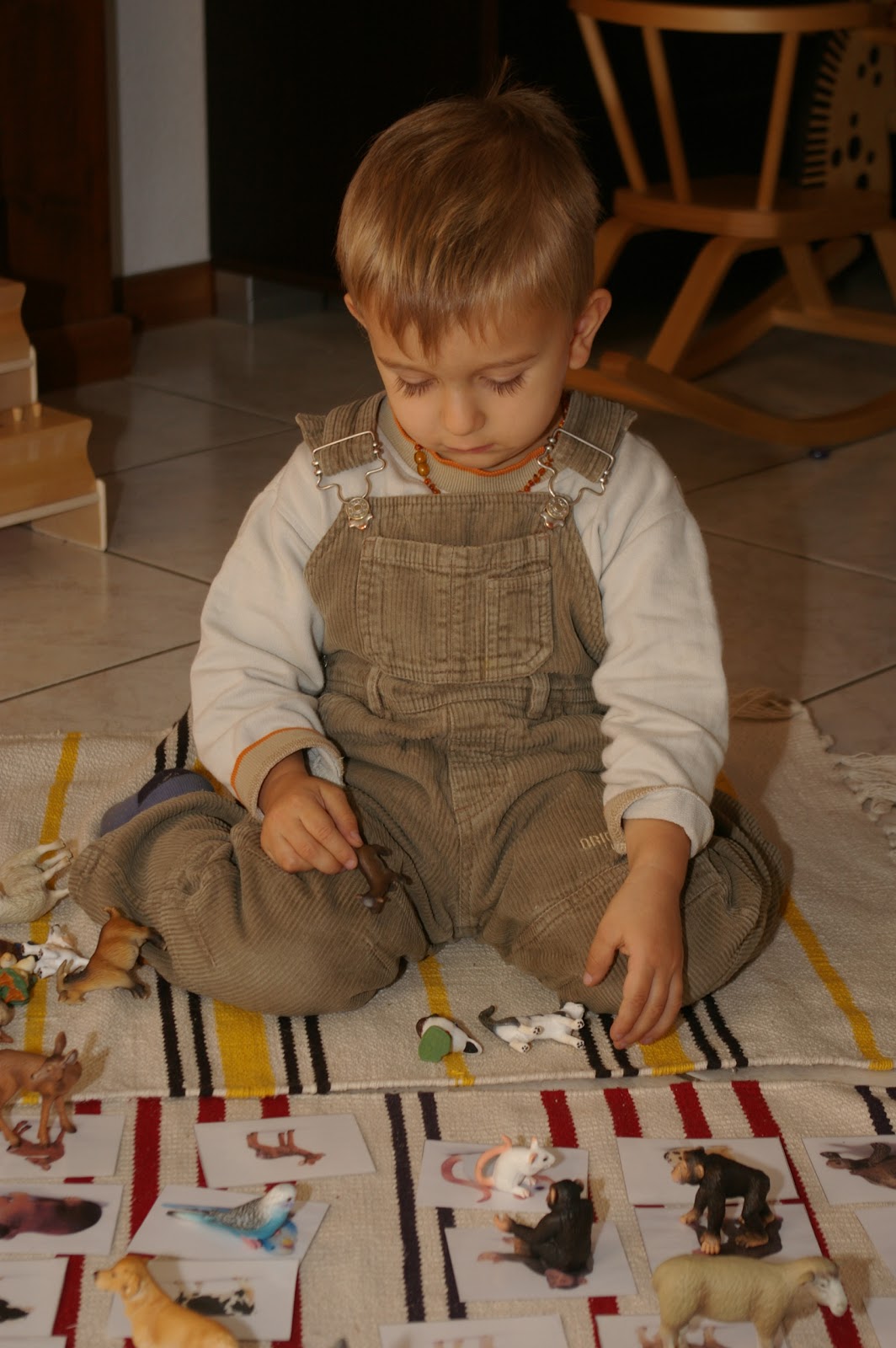 Les cartes avec les animaux ont été un grand succès il y a quelques mois, mais Grégoire s’en est lassé . Il les a abandonnées quelques temps sur l’étagère. Mais, un jour, il les a “redécouvert” et depuis, il les fait très régulièrement. Malgré le nombre d’animaux qui ne cesse d’augmenter, il s’en sort bien et il parvient à les placer sur les cartes correspondantes.