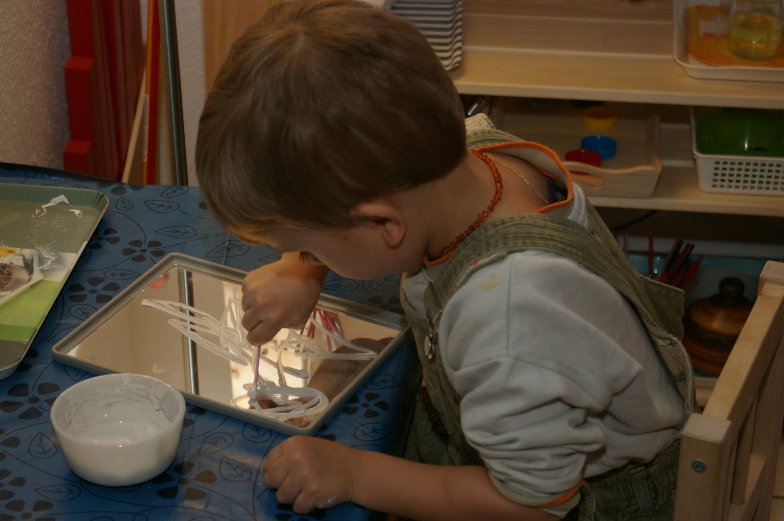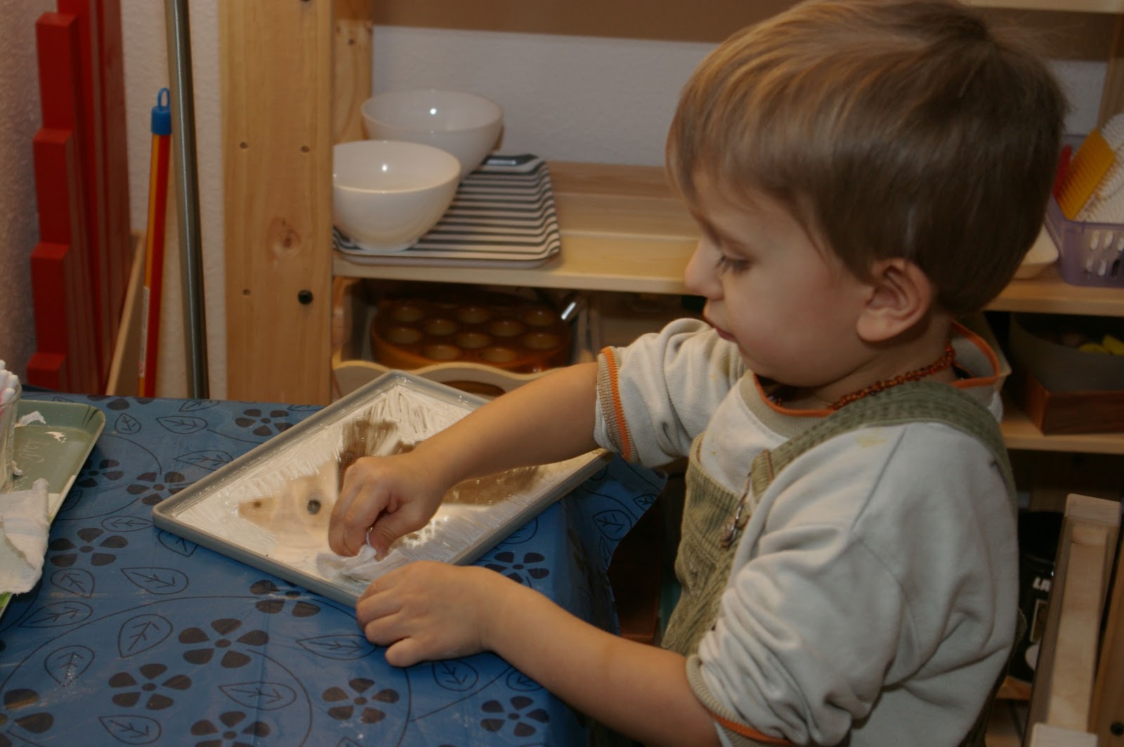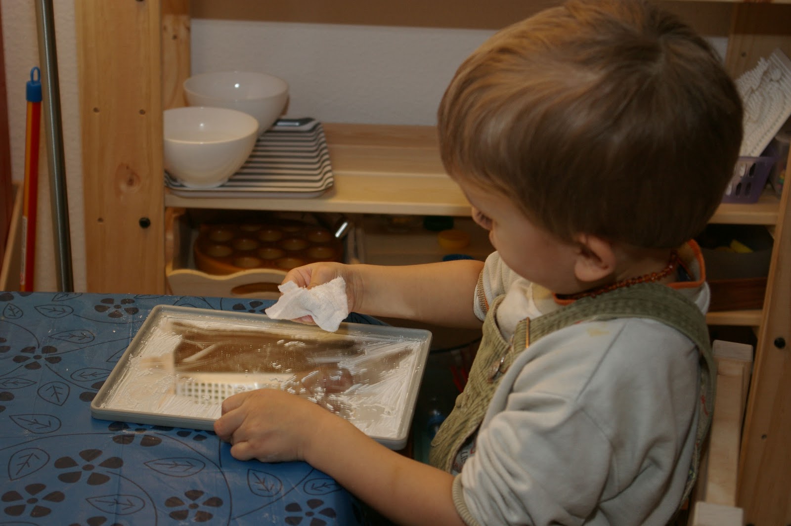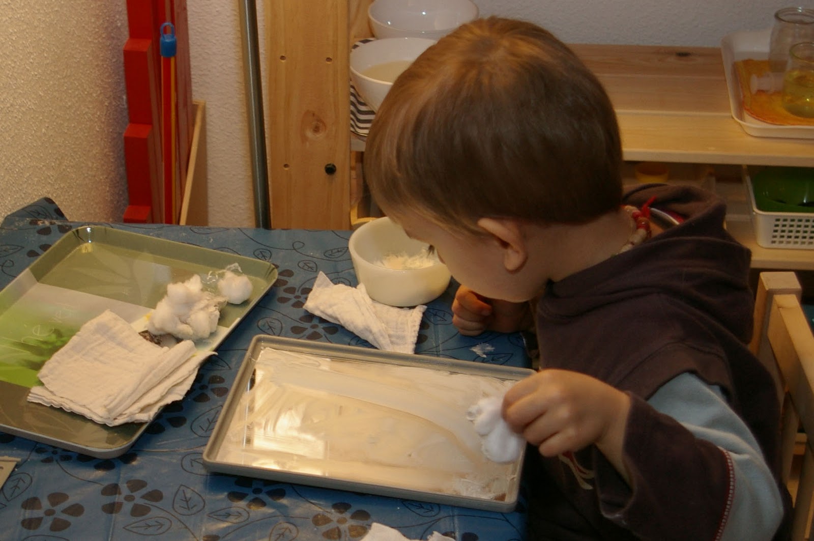 Après une présentation de l’activité “laver un miroir” plutôt réussie,  Grégoire s’est passionné pour cette activité.