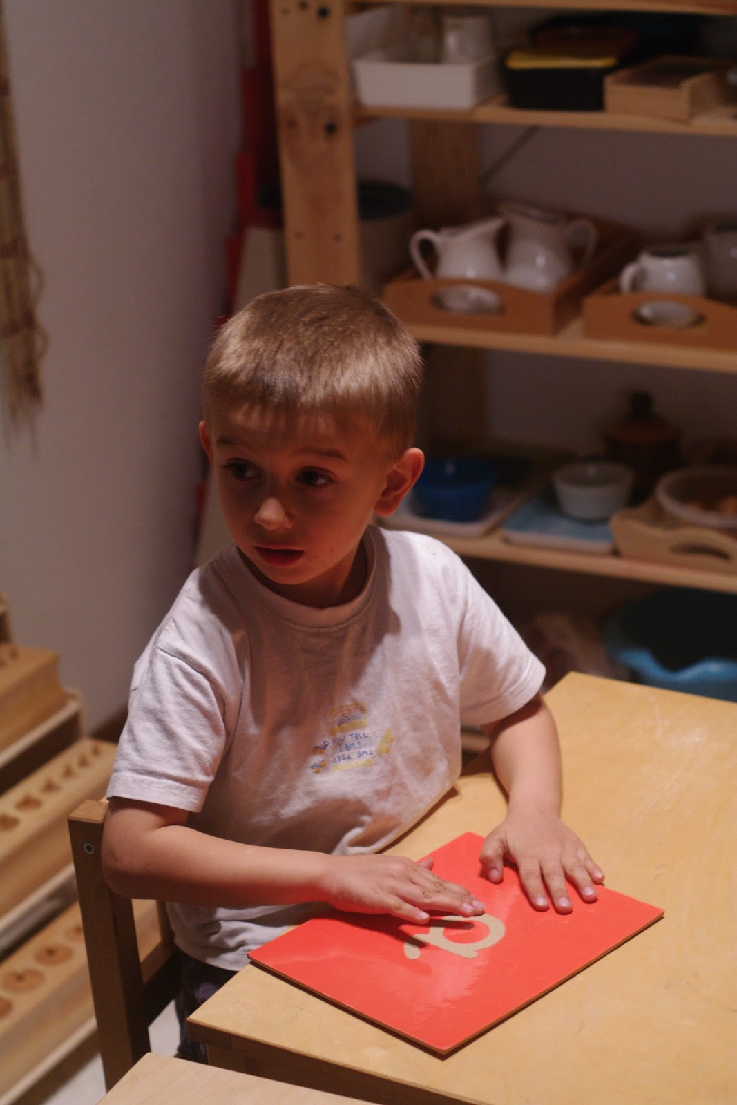Grégoire est sur ses premières lettres rugueuses: g, m et a