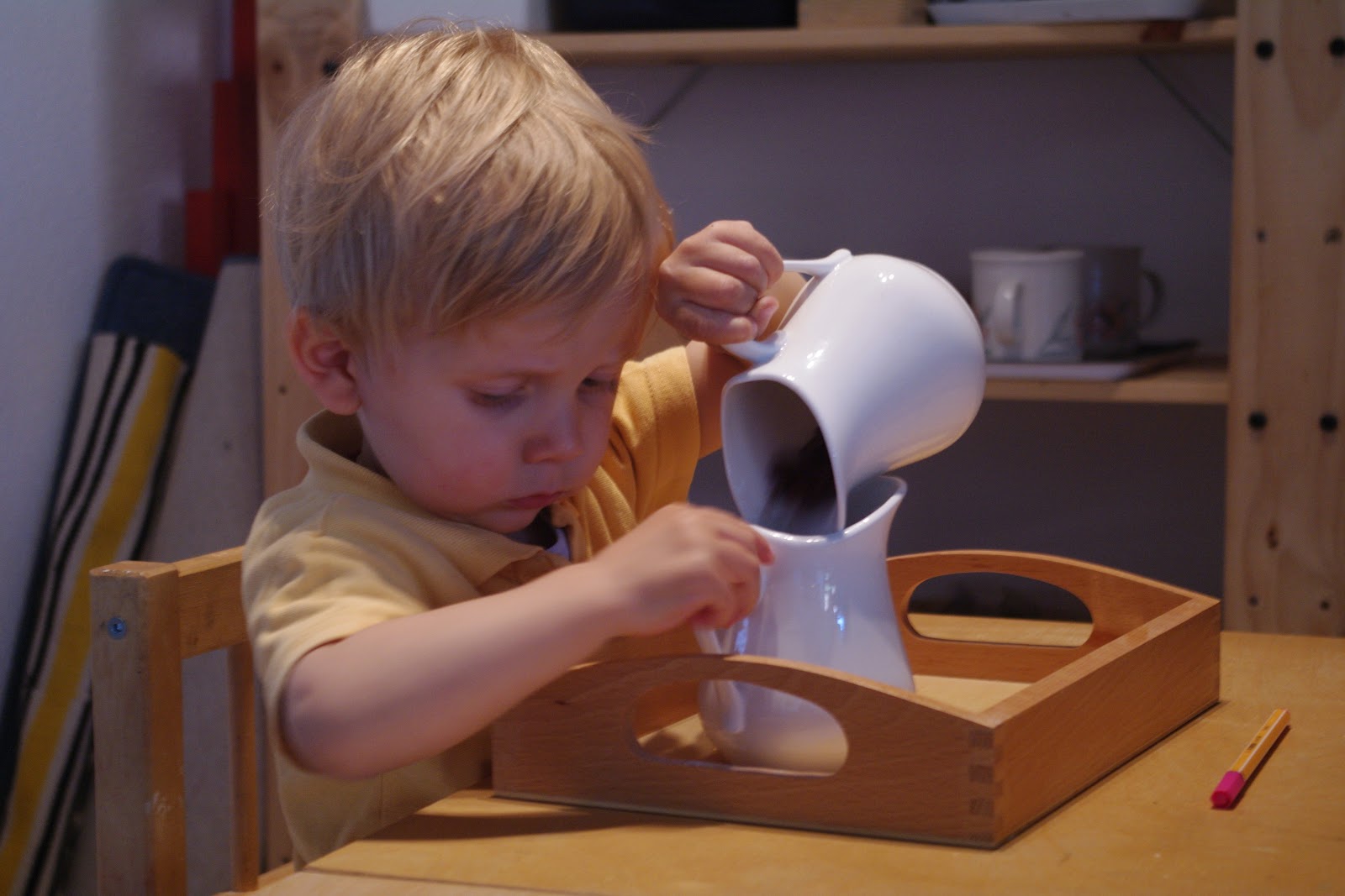 Grégoire fait la plupart du temps les tracés avec la main droite… parfois il le fait des deux mains… c’est déjà un droitier affirmé, mais de temps en temps, surtout si c’est une nouvelle lettre, j’insiste pour qu’il travaille ses deux mains