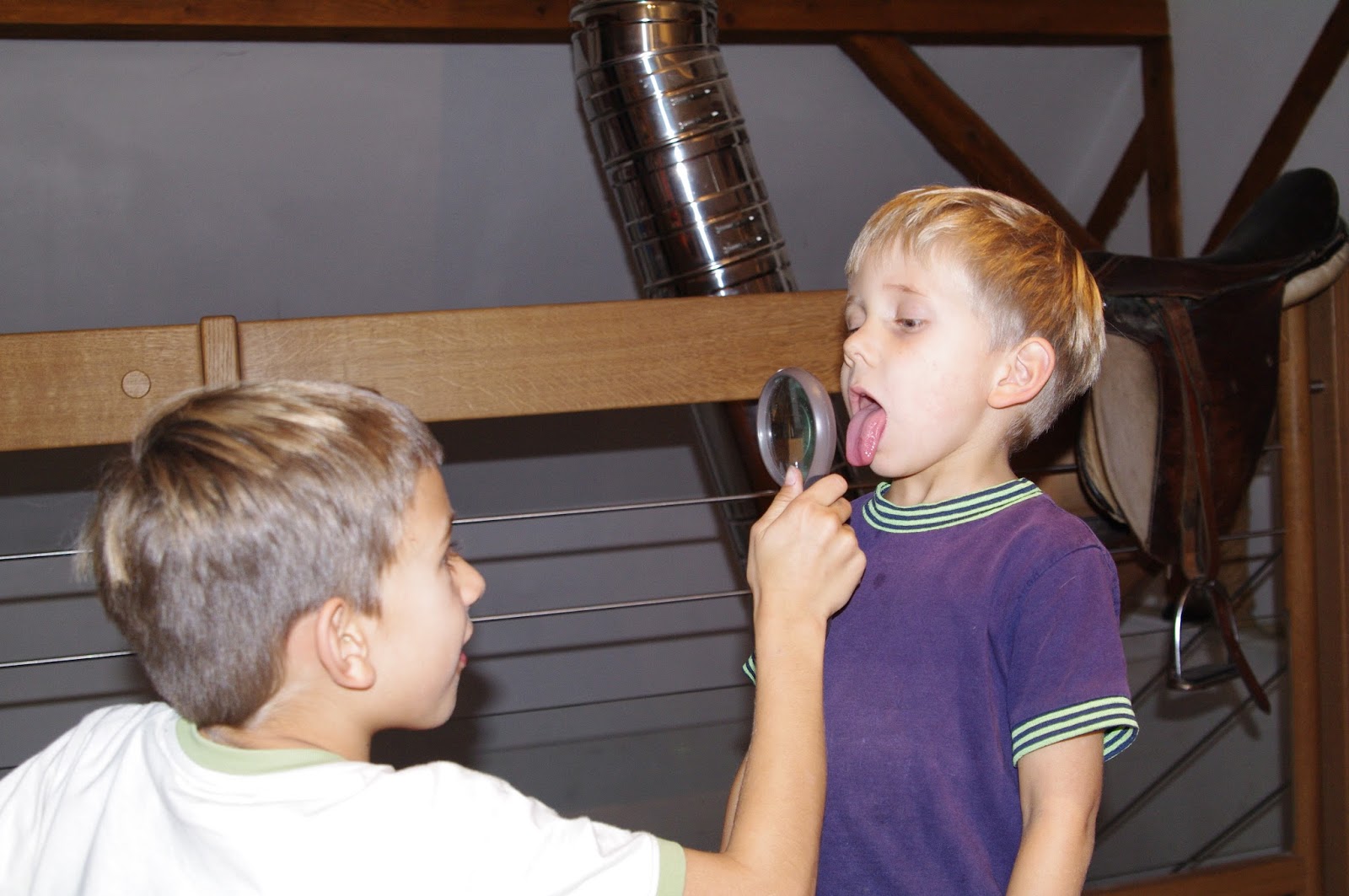 Nous avons aussi fait l’expérience (avec un coton tige) de tester un goût sur différentes zones de la langue afin de voir si on sent partout la même chose. Et bien non! Il existe des zones bien délimitées pour chacun des goûts. Les enfants les ont dessinées à l’aide d’un livre dans leur cahier.