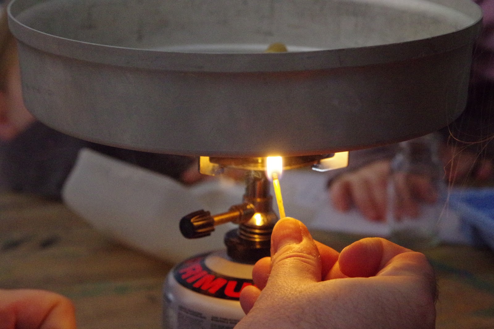 | On observe la vapeur….Le glaçon et la cire désormais fondus se mélangent… |