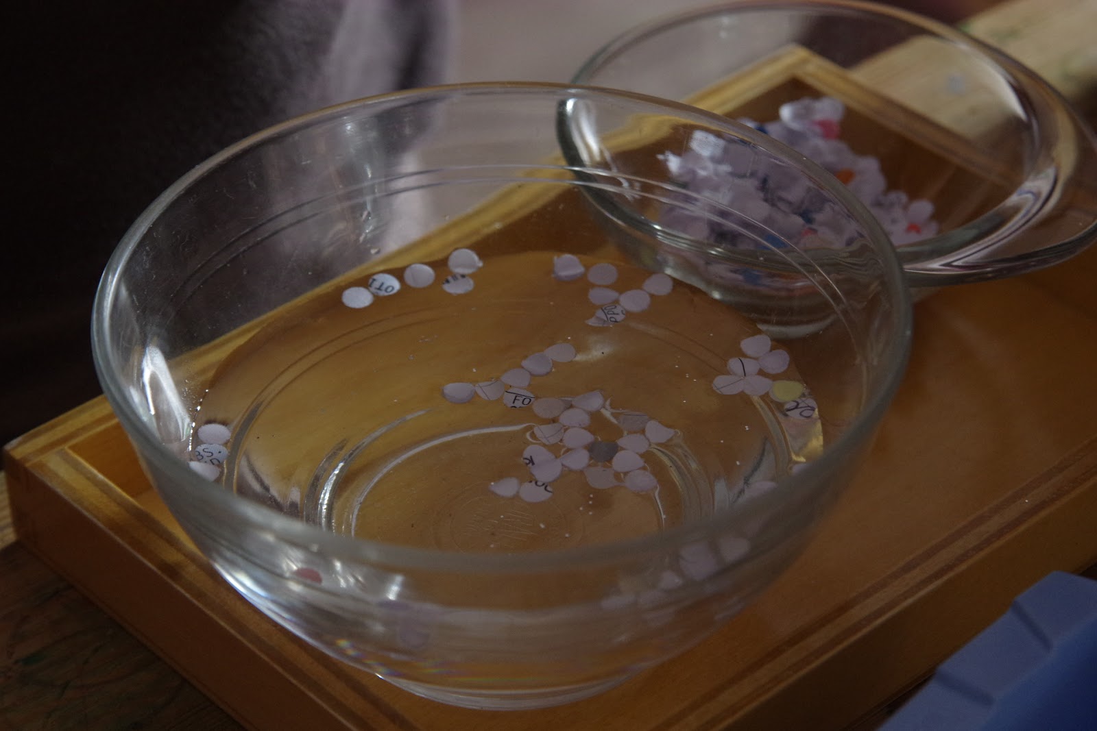 | ….pendant que certains observent l’eau colorée, le miel et l’huile… |