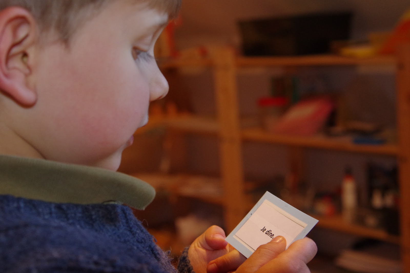 – des cartes vierges (on écrit avec l’enfant ou l’enfant tout seul) ou des cartes avec des petits textes